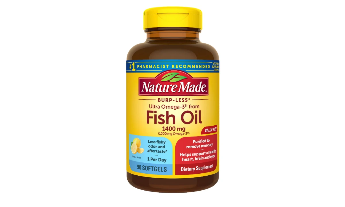 One softgel provides 1400 mg fish oil and 1000 mg omega-3 fatty acids, with reported EPA and DHA around 683 mg and 252 mg. Nature Made says the oil is purified to remove PCBs, dioxins, furans, and mercury, but the page does not show the same IFOS-style testing signal as stronger fish oil reviews.